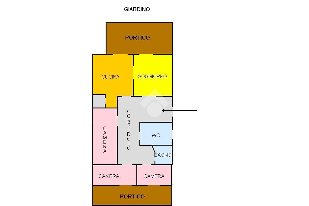 Un delizioso portico ci accoglie all'interno della villa, con ampia sala che conduce a un salone comunicante con la cucina soggiorno e ripostiglio.