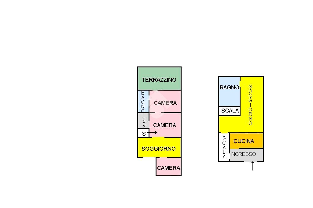 L'APPARTAMENTO: Piano terra con ingresso indipendente su porticato che conduce a una cucina abitabile, ampio soggiorno e un bagno con doccia.